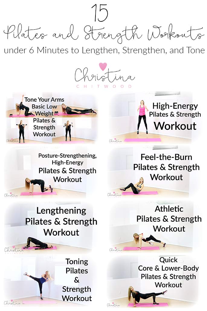 Here are 15 Pilates and strength workouts each under 6 minutes for you to work out to!