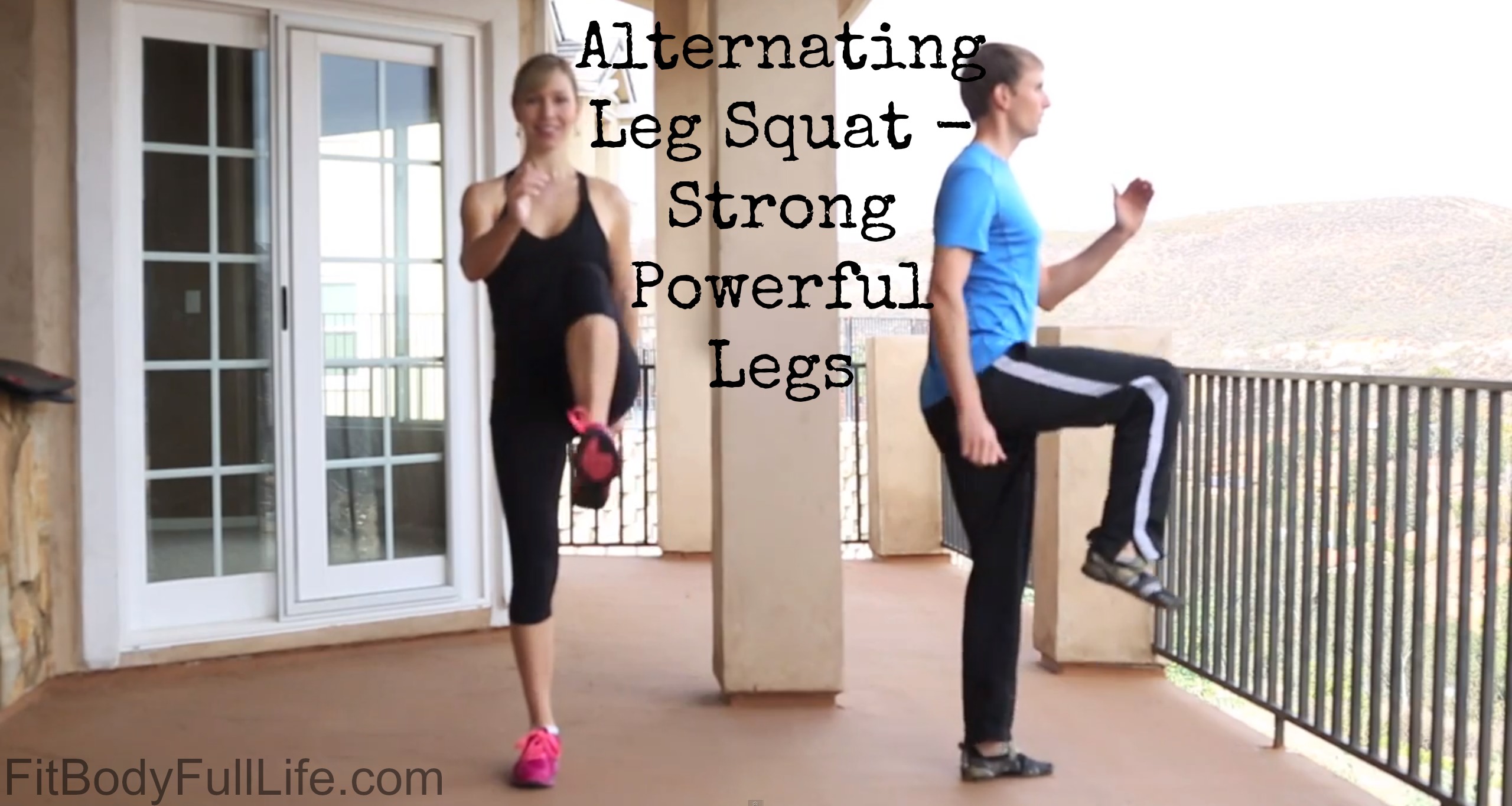 Alternating Leg Squat - Strong Powerful LegsThis move rocks! It does it all. You are squatting down using both legs, stabilizing the hips and core, and then pushing up with one leg. That will challenge your balance as well as ankle, knee and hip stability. At the same time, you will be strengthening your entire triple extension chain. Your triple extension muscles are your ankle extensors (calf), knee extensors (quads) and hip extensors (glutes). This move will improve your posture, your strength and your sporting performance. That is why this move rocks!