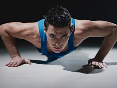 3. Push ups – The tried and tested push up. Great for upper-body strength and stabilization. Too tough? Try them resting on your knees. Too easy? Try raising your legs onto a chair or table. 15 reps