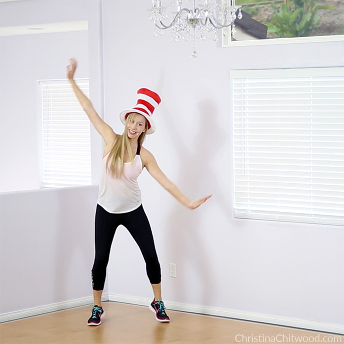 Work out to the Breakdown of Cat in the Hat Workout for Kids and Kids at Heart YouTube video! (This includes sections 1 – 4!)