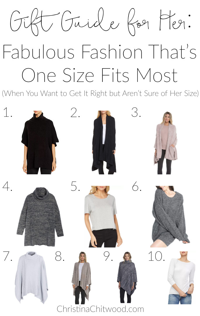 You want to give a gift that’s stylish, but you’re just not sure what size to get. You’re in the right place! I’ve put together a gift guide for her: fabulous fashion that’s one size fits most to help you with your holiday shopping!