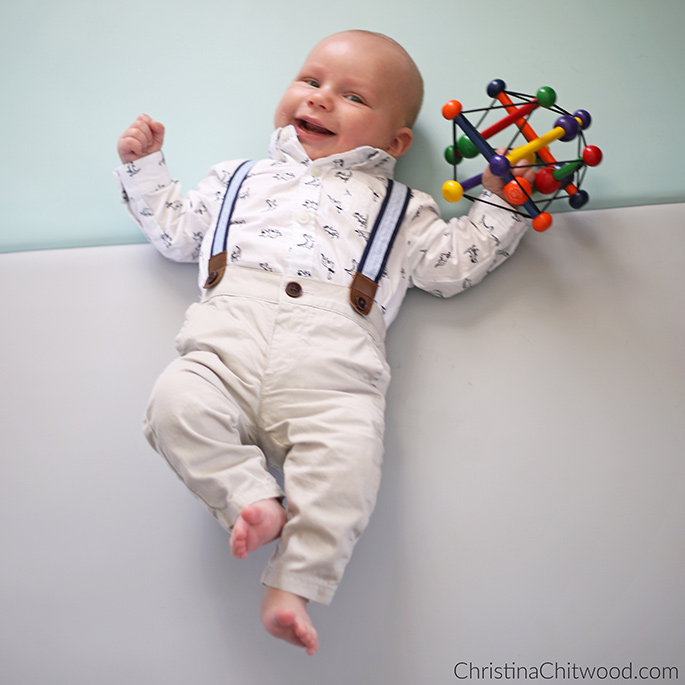 When we bought the Skwish for Caleb, we thought it was really neat and thought he would like it, but we didn’t know quite how much he would like it. It turned out to be the very first toy he grabbed when he started grabbing and holding things. He grabbed the Skwish and held it all by himself when he first grabbed it. Caleb continues to love his Skwish months later and has used it for teething, as a rattle, moving after it when it rolls away, and more.