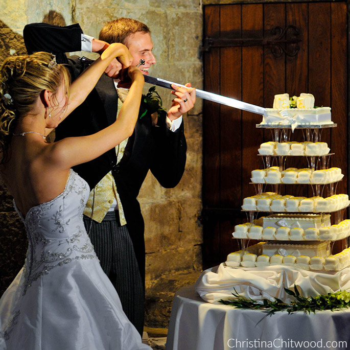 - Use a sword to cut your wedding cake. Cutting the wedding cake with a sword is a fun and traditional way to cut the first slice of wedding cake. Tom really wanted to cut our wedding cake with a sword, and I thought it would be awesome! We had so much fun with it! It really made the cake cutting special and more unique than using a cake knife.