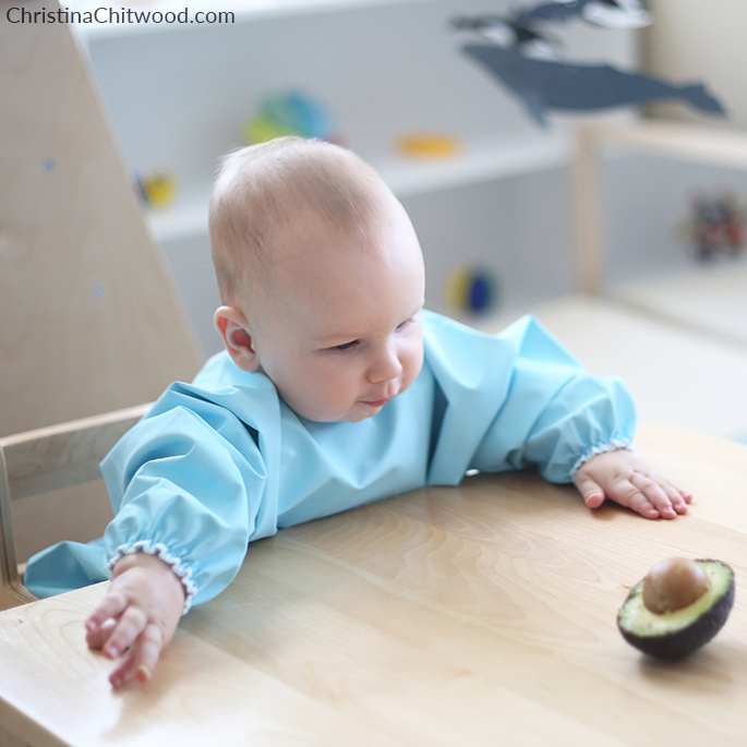 1. We introduced the whole food our baby was going to eat. We gave Caleb a washed whole avocado to hold, so he could look at and feel the avocado.