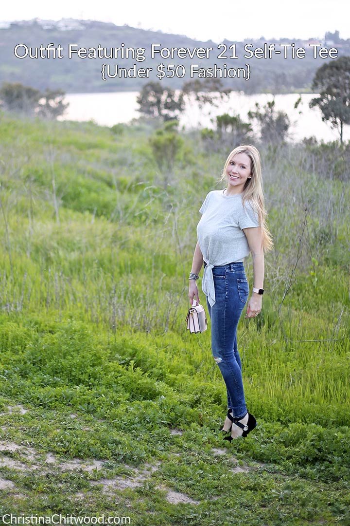 I’m loving this cute and comfortable outfit right now! This outfit featuring Forever 21 self-tie tee is so affordable. The self tie looks stylish and is perfect with all the tie-in-front tops in style this season.