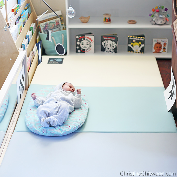 I’m so excited to share the Montessori newborn baby space we have for Caleb in our living room. We absolutely love it!